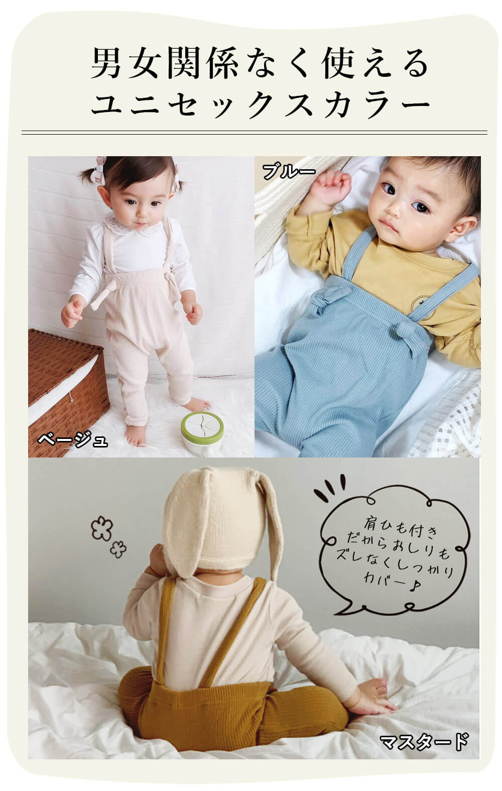 ・サロペット風レギンスなのでお腹が出る心配もなく秋冬の冷え対策にもなります。
