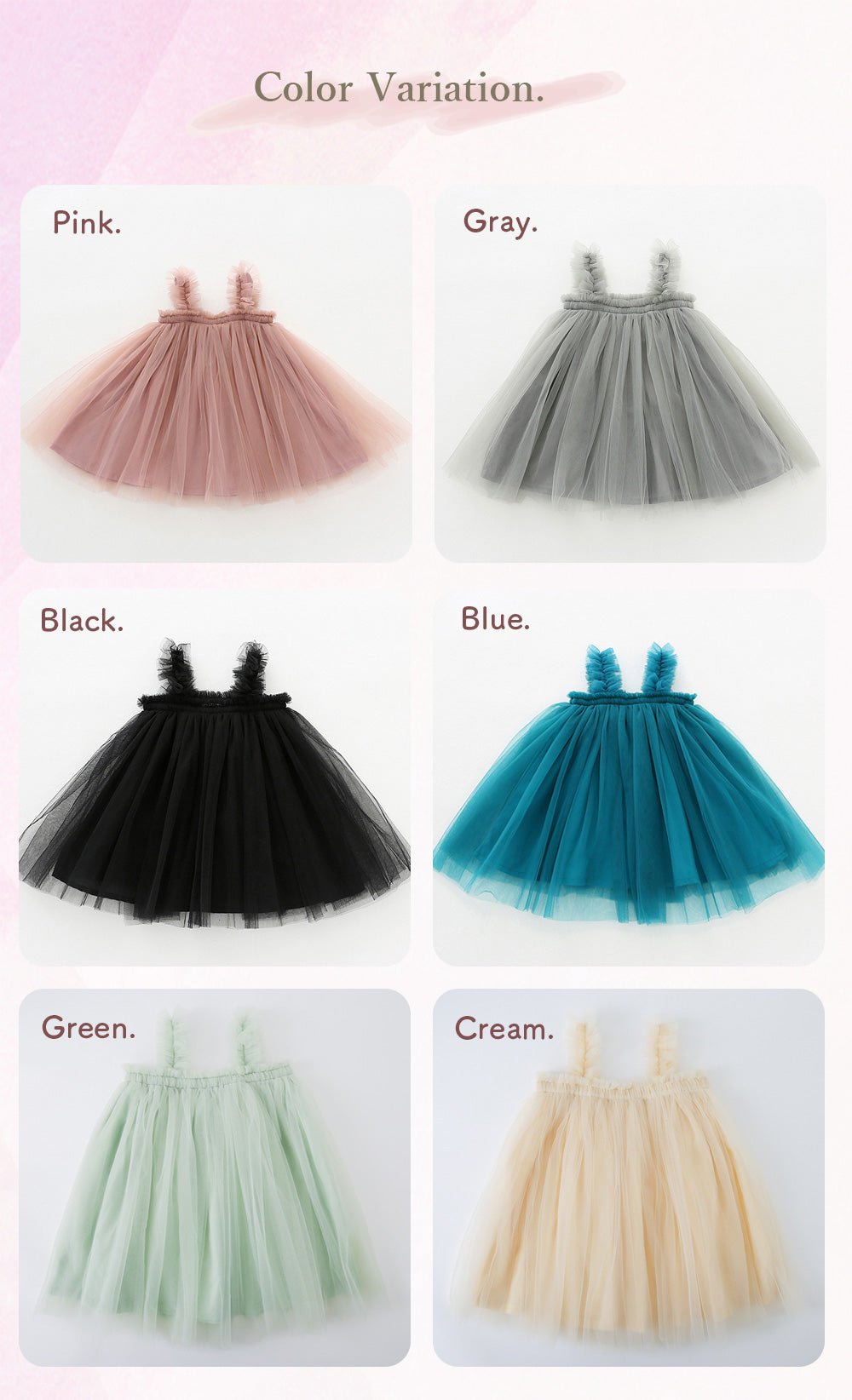 ピンク・グレー・ブラック・ブルー・グリーン・クリーム