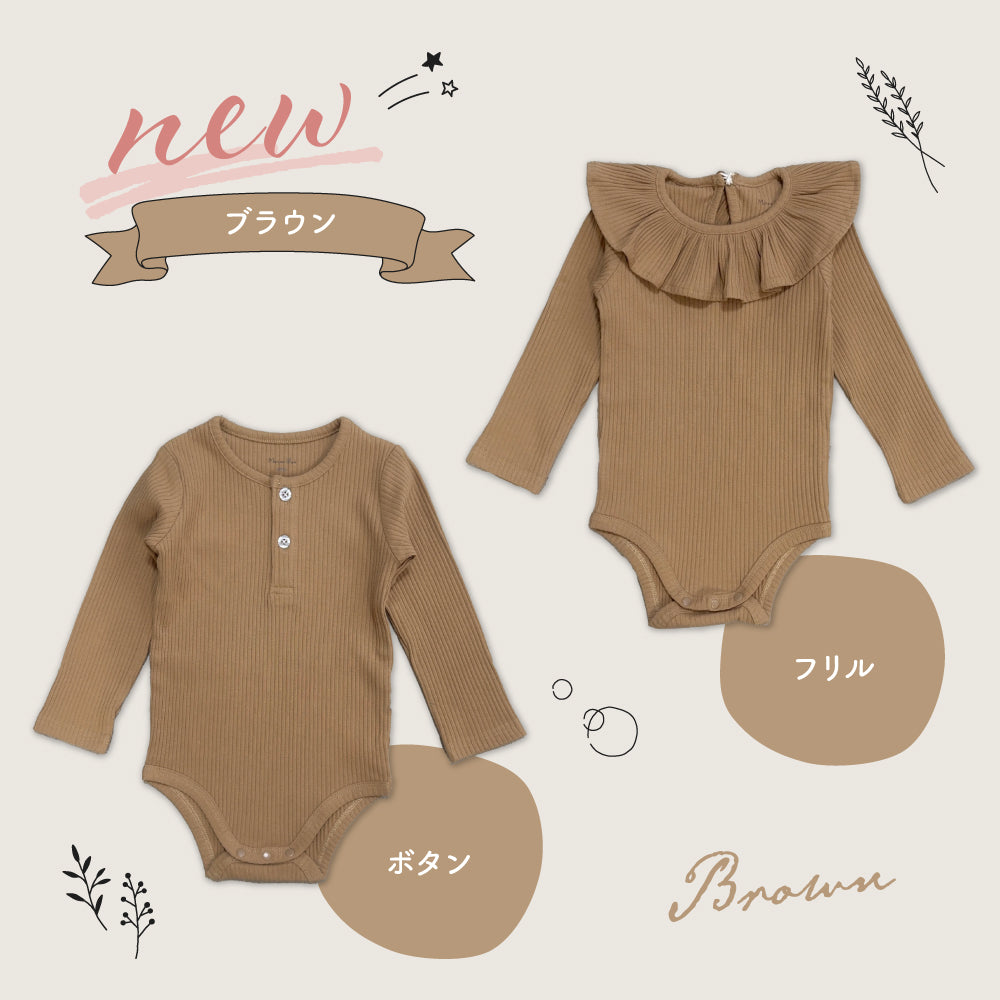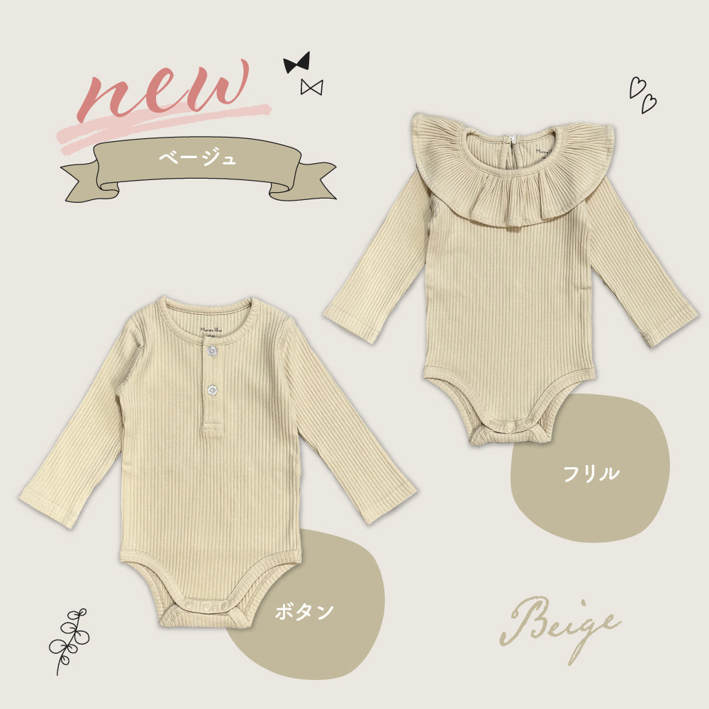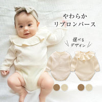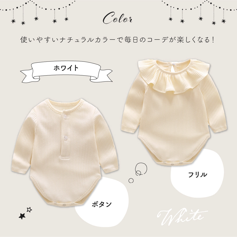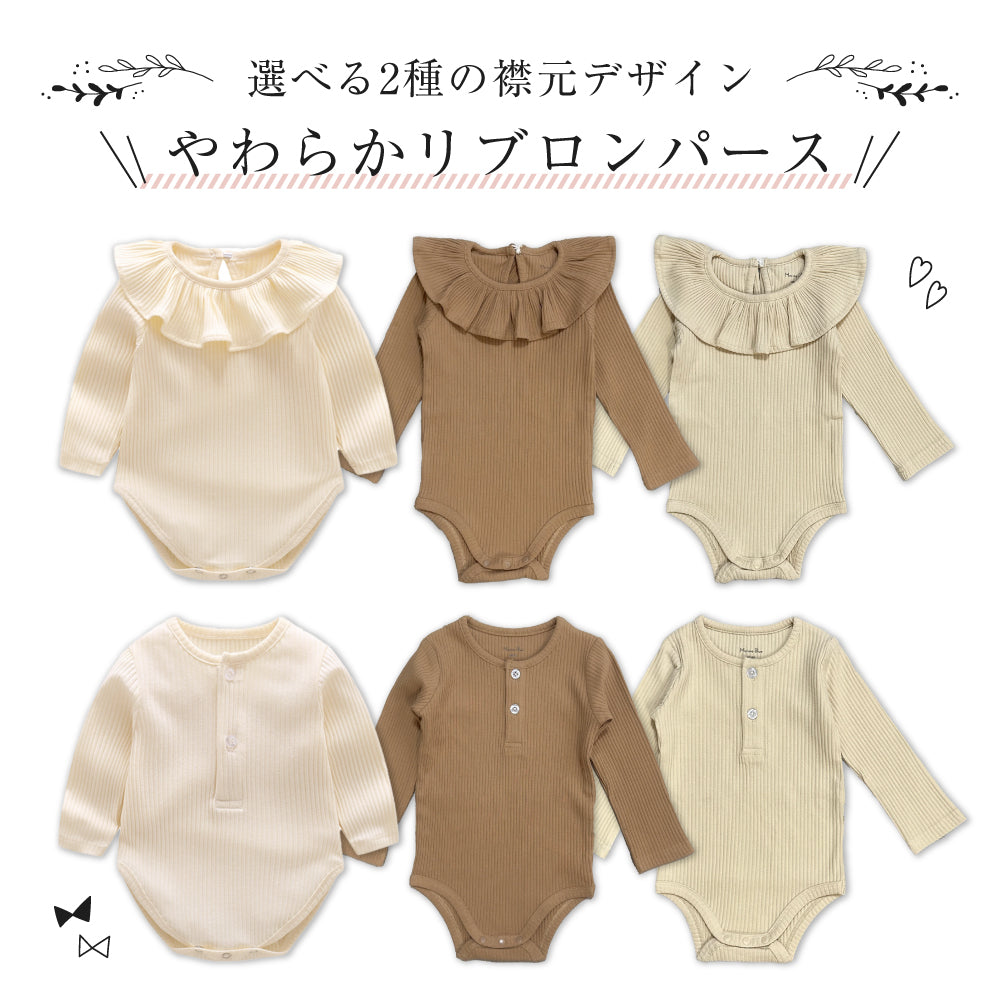 ・襟フリルタイプとボタンタイプが選べるリブロンパース
