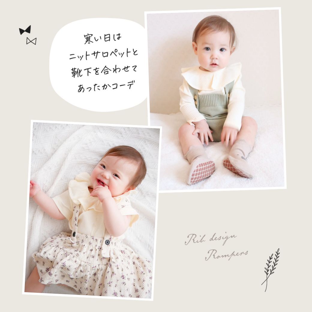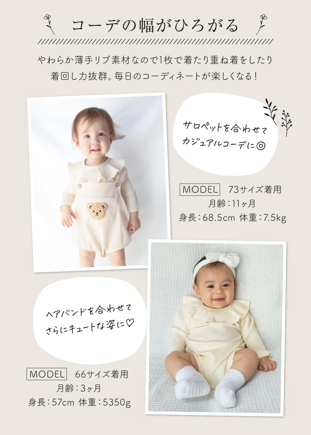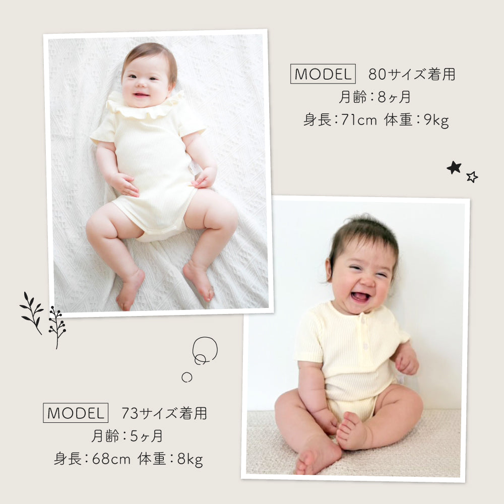 ・襟フリルタイプとボタンタイプが選べるリブロンパース
