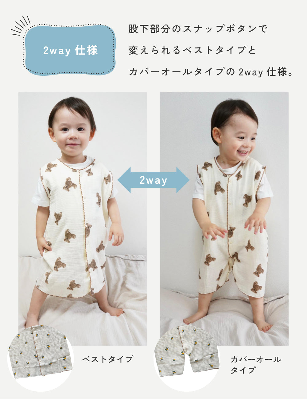 ・股下のボタンの止め方でカバーオールタイプにも変えられる2way仕様
