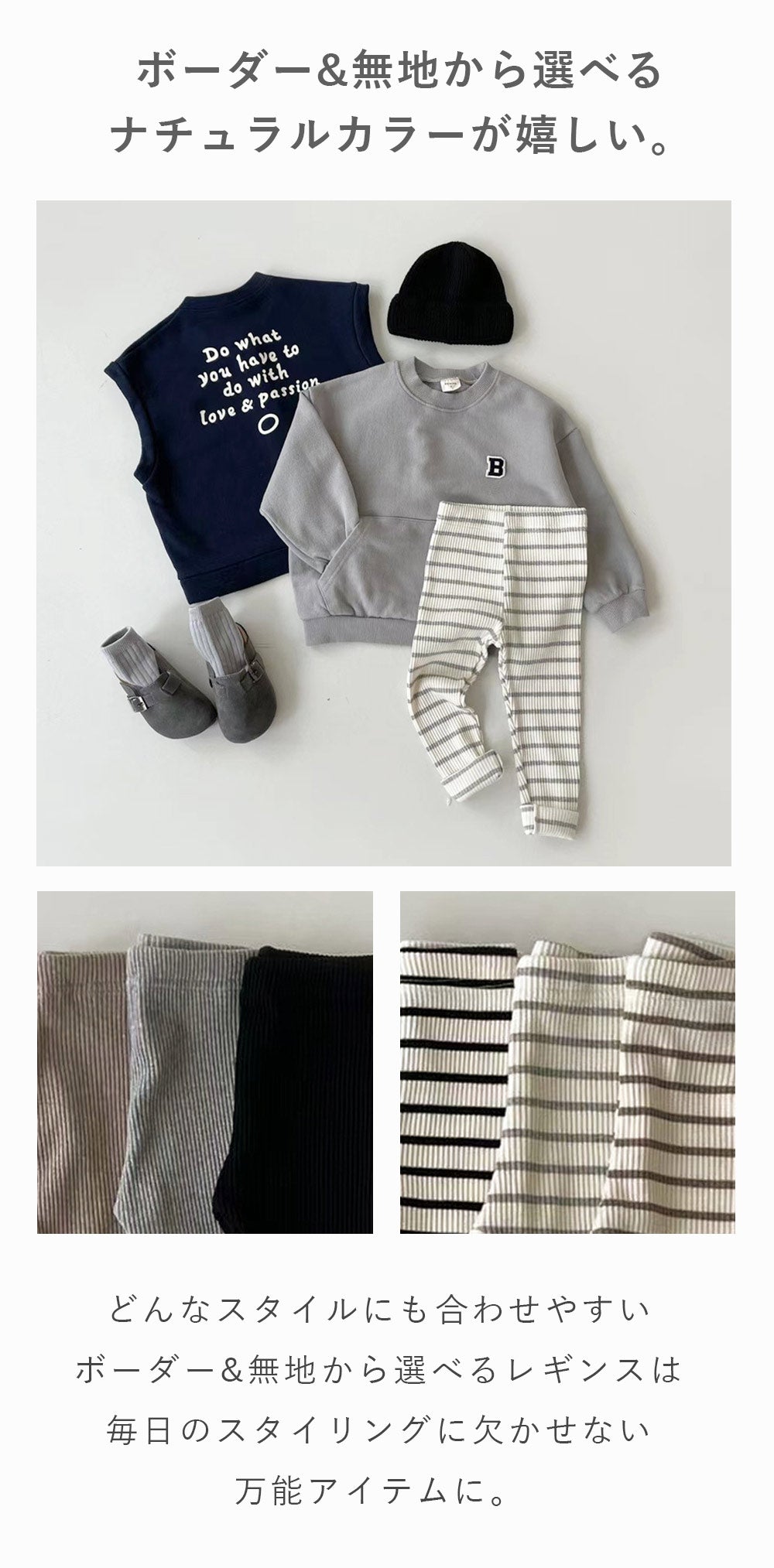・良く動く元気な子どもたちも安心な、すっぽりとお腹や足元を覆ってくれるコットンレギンス