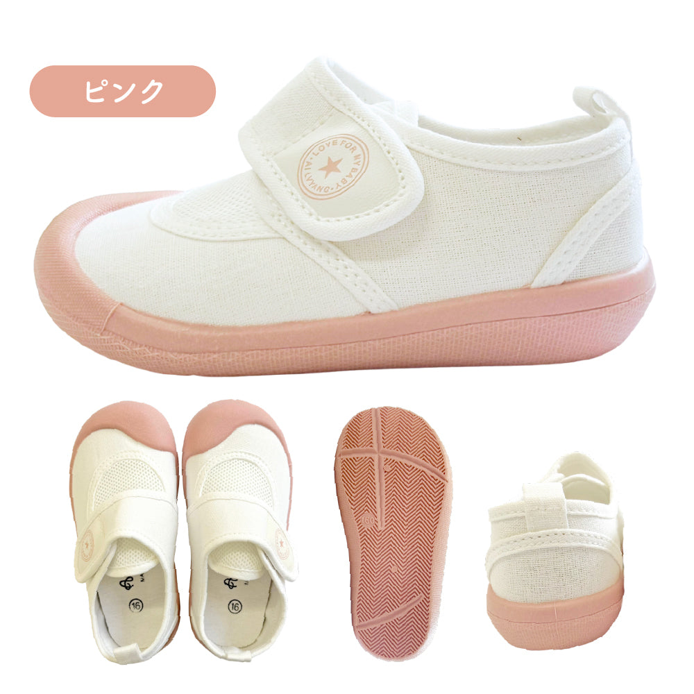 ・メッシュ素材を使用しているため、お子様の足もムレにくく快適に。汗をかきやすい季節にもサラッと履けます。