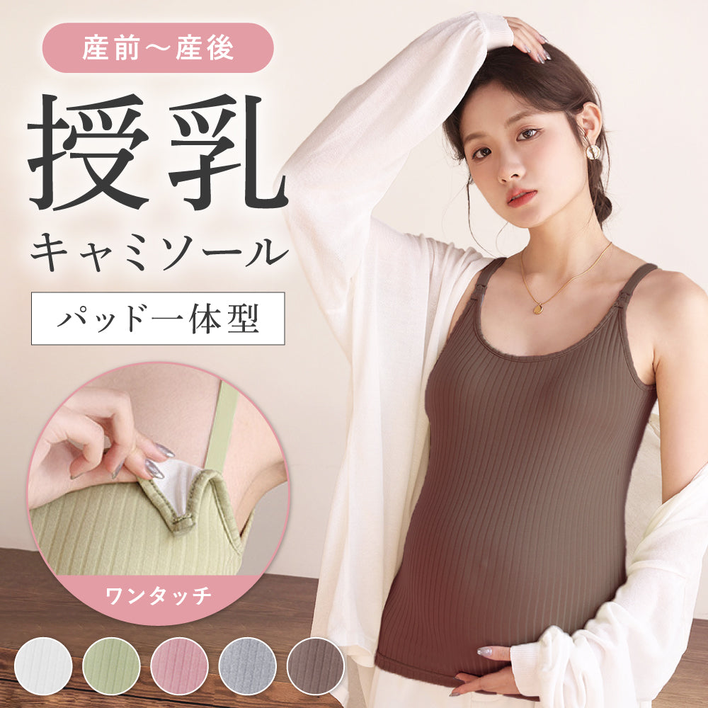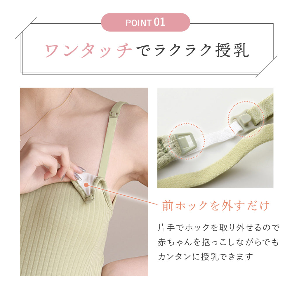 ・マタニティママたちの悩みを解決!肌に優しくワンタッチで授乳が出来るキャミソール。