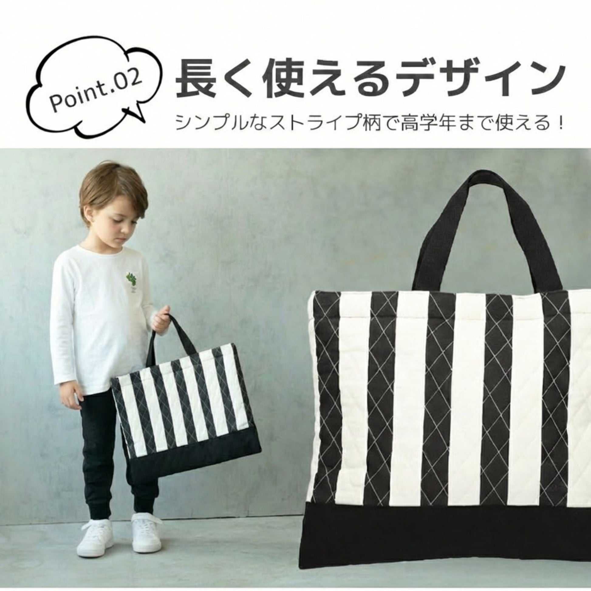 ・シンプルなストライプ柄で高学年まで使えるので長くお使いいただけます。